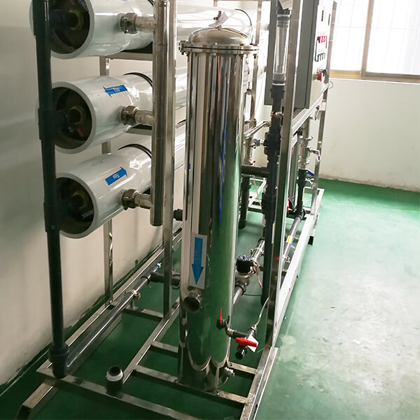 預(yù)處理系統(tǒng)一般包括原水泵、加藥裝置、石英砂過濾器、活性炭過濾器、精密過濾器等。其主要作用是降低原水的污染指數(shù)和余氯等其他雜質(zhì),達到反滲透的進水要求。預(yù)處理系統(tǒng)的設(shè)備配置應(yīng)該根據(jù)原水的具體情況而定。