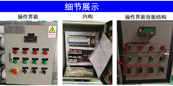 電氣控制系統(tǒng)是用來控制整個反滲透系統(tǒng)正常運行的。包括儀表盤、控制盤、各種電器保護、電氣控制柜等。