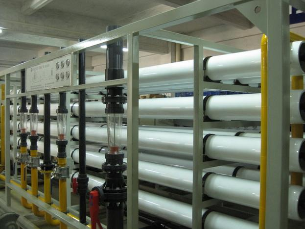 反滲透是當(dāng)今先進(jìn)和有效的除鹽技術(shù)。其原理是在壓力的作用下,水分子透過RO膜成為純水,水中的雜質(zhì)被RO膜截留排出。在水處理工藝中,可以去除水中的溶解鹽、膠體、細(xì)菌、病毒、有機(jī)物等雜質(zhì),是目前水質(zhì)深度凈化的一種先進(jìn)、經(jīng)濟(jì)的手段。系統(tǒng)除鹽率一般為9799%。一級(jí)反滲透出水電導(dǎo)率可以達(dá)到10US/CM