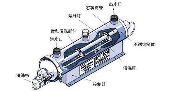 利用特殊設計的高效率,高強度和長壽命的C波段紫外光發(fā)生裝置,產生強紫外C光照射流水(空氣或固體表面),當水(空氣或固體表面)中的各種細菌、病毒、寄生蟲、水藻以及其它病原體受到一定劑量的紫外C光輻射后,其細胞中的DNA結構受到破壞,從而在不使用任何化學藥物的情況下殺滅水中的細菌、病毒、以及其它致病體,達到消毒和凈化的目的。